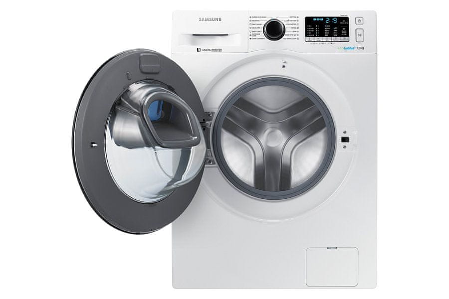 AddWashPralni stroj Samsung WW5500 (WW70K5410UW) energijskega razreda A+++ se pohvali z zmogljivostjo pranja do 7 kilogramov. Zaznamuje ga inovativna AddWash funkcija, ki omogoča preprosto in hitro dodajanje pozabljenih oblačil, ko ste cikel pranja že sprožili. Obenem omogoča vstavljanje ročno opranih oblačil, za katera želite, da jih stroj izpere ali ožame, dodate pa lahko tudi večjo količino mehčalca. |