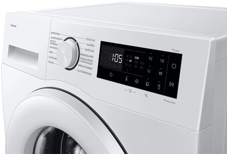 Pametno upravljanje preko Wi-Fi povezave in aplikacije SmartThings omogoča enostavno spremljanje in upravljanje pranja na daljavo, medtem ko intuitiven LED zaslon zagotavlja popoln nadzor nad vsemi programi.