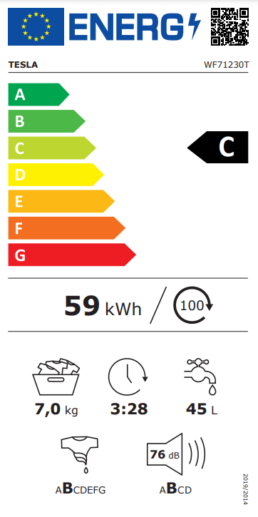 Tesla WF71230T spada v energijski razred C, kar pomeni odlično razmerje med učinkovitostjo in porabo energije. Ta pralni stroj je zasnovan tako, da zagotavlja visoko zmogljivost čiščenja ob zmanjšani porabi energije, kar pripomore k zmanjšanju stroškov in obremenitve okolja. Izberite trajnostno rešitev, ki ohranja vaša oblačila čista, hkrati pa zmanjšuje vpliv na okolje.