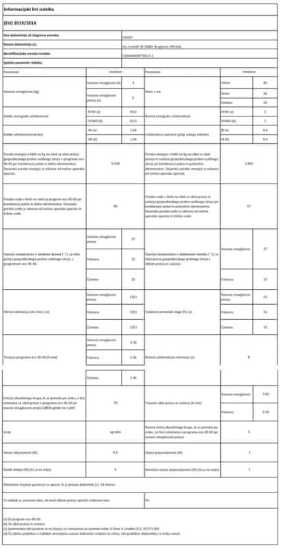 | Energijski razred pranja, sušenja in ožemanja | E |