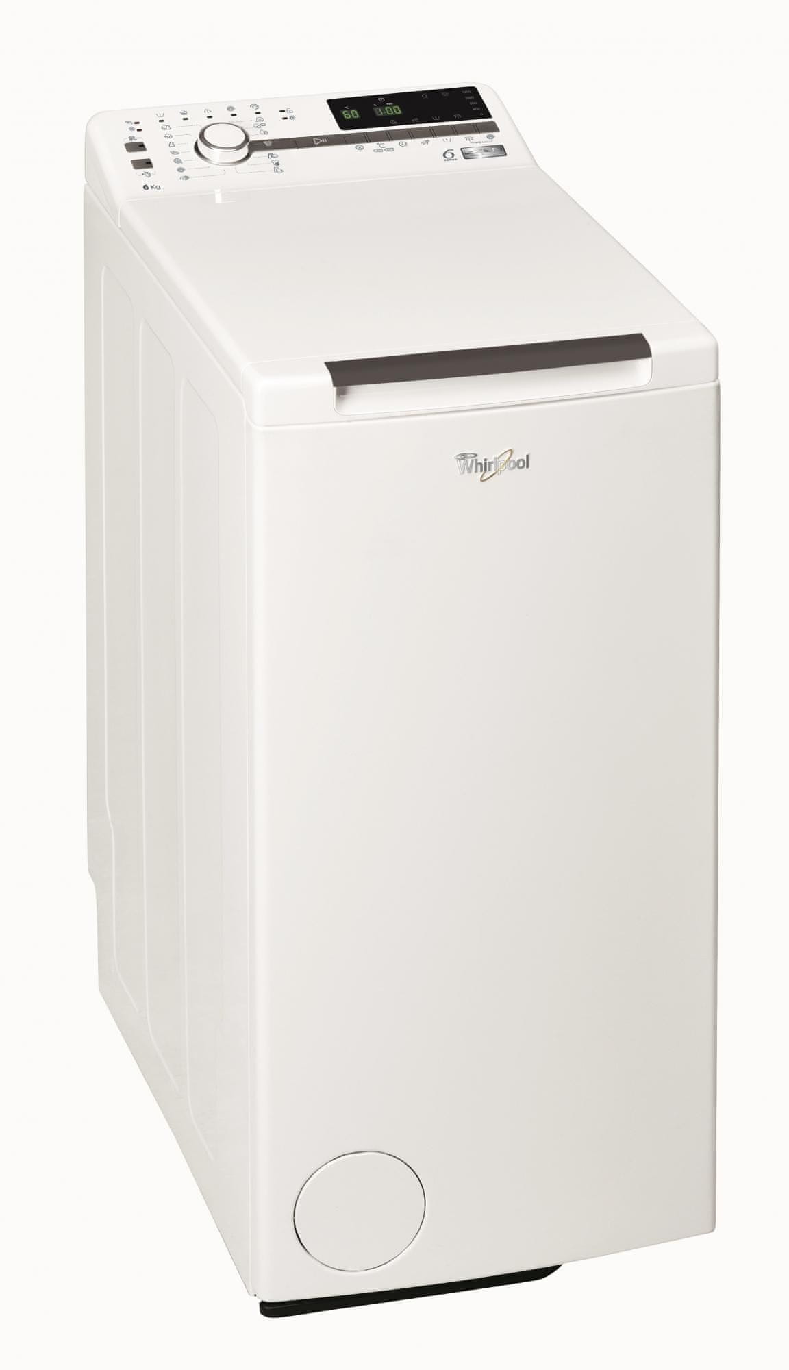 Whirlpool TDLRB 6240SS EU/N pralni stroj samodejno prepozna količino perila in izbere najboljši program pranja glede na vrsto tkanine. Motor proizvede do 1200 obr/min.