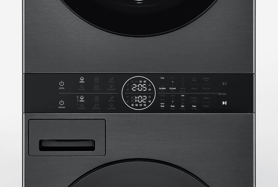 LG pralni stolp WashTower je idealna rešitev za tiste, ki želijo maksimalno udobje v elegantni in prostorsko varčni napravi. Elegantna črna zasnova hkrati izboljšala estetiko vašega doma.