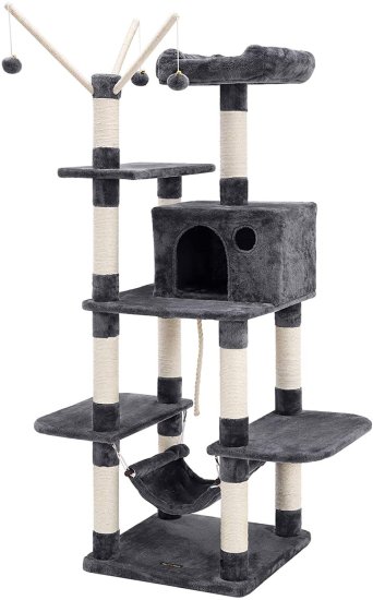 FEANDREA Mačje drevo s hišico in visečo mrežo 154 cm temno sivo PCT86G
