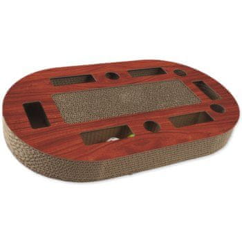 Interaktivno kartonasto praskalno mesto za mačke z vzorcem v barvi češnje.
