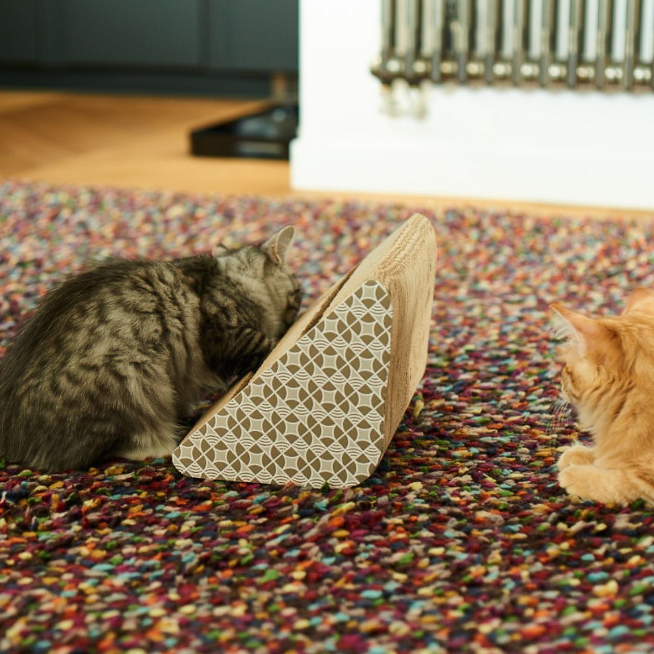 Praskalnik za mačke Kartonska lepenka Žoga Trikotnik je odlična izbira za aktivne mačke, ki obožujejo praskanje in interaktivne igre. Zagotavlja nego krempljev in hkrati ščiti vaše pohištvo pred poškodbami. Naročite še danes in svoji mački prinesite še več veselja in ji omogočite naravno izražanje nagonov.