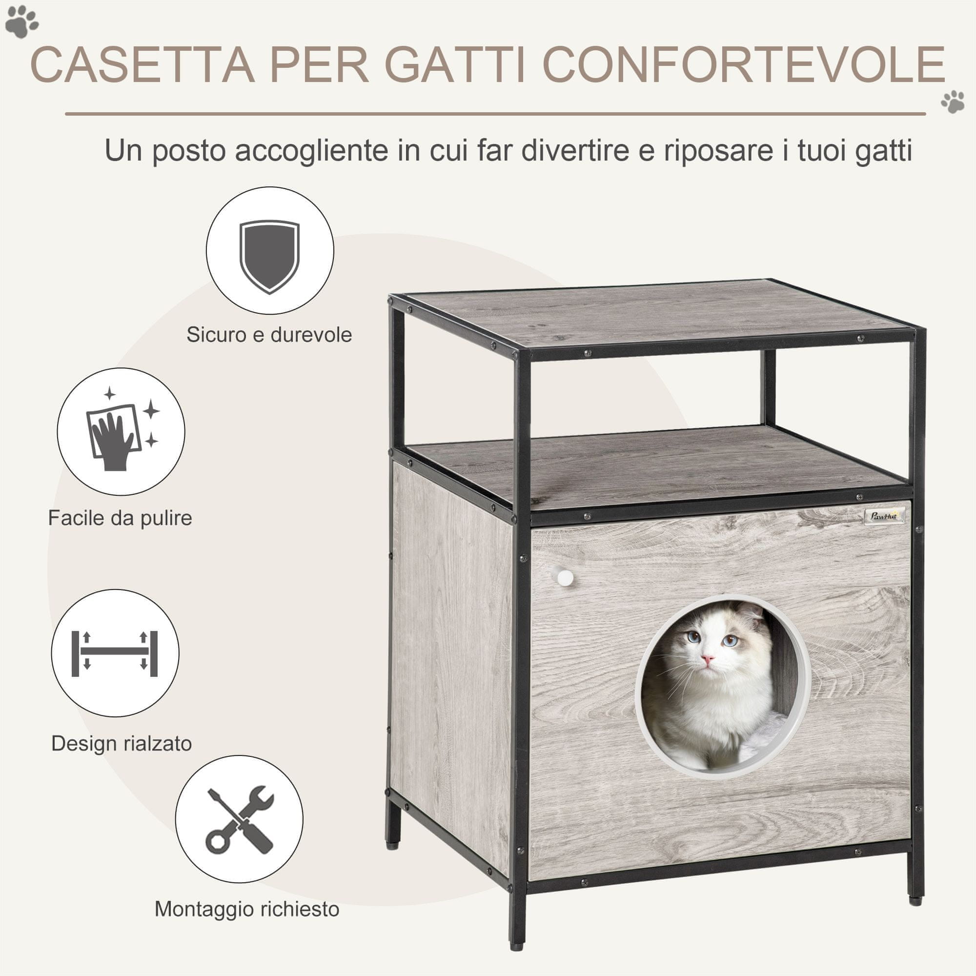 PAWHUT Mačja hiša Večnamenska mačja hiša s pralno blazino in policami, omarica, miza za pesjak iz jekla in lesa, Siva