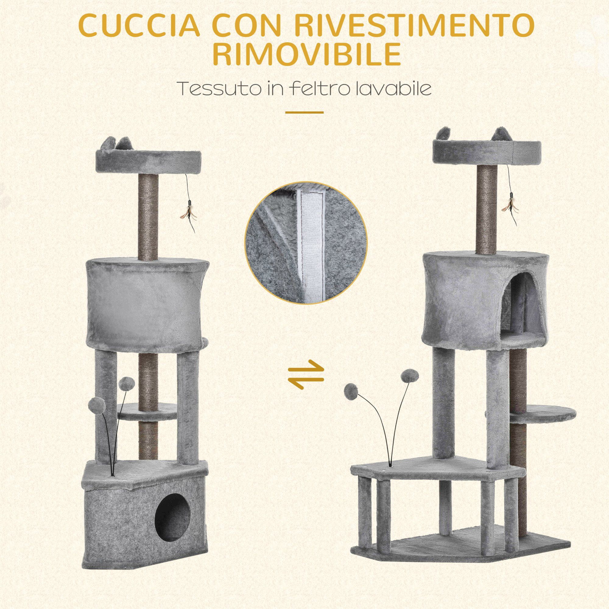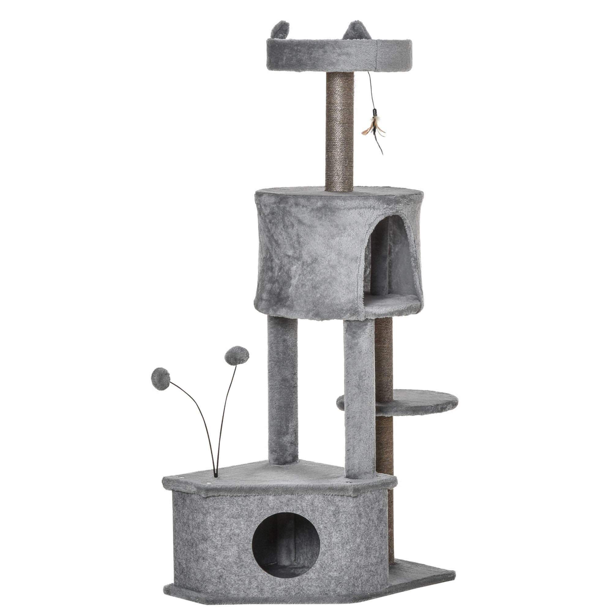 PAWHUT PawHut drevo za praskanje za odrasle mačke in mačke z boksom, stebri iz sisala ter obloga iz pliša in filca, siva, višina 133 cm