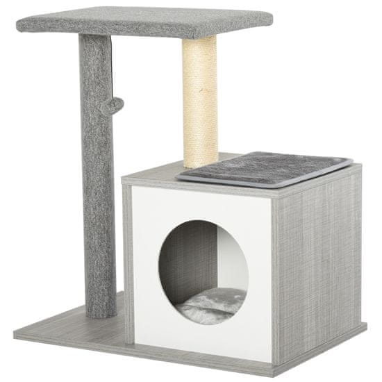 PAWHUT PawHut večnivojsko drevo za praskanje za mačke in mačkone z boksom in stebričkom iz sisala, sivo, 59 x 39 x 62 cm, 59 x 39 x 62 cm