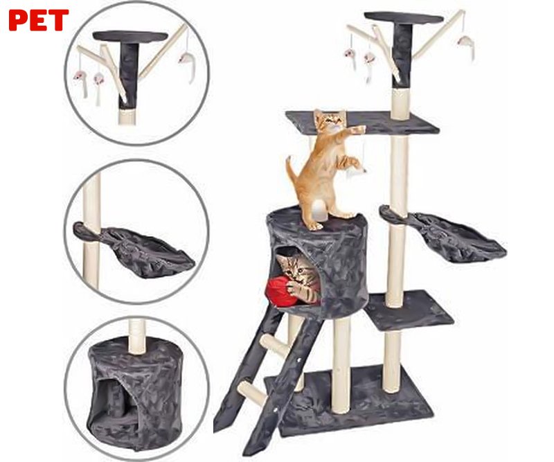 Omogočite svojim mačkom njihov lasten prostor, kjer bodo lahko zadovoljili vse svoje potrebe po igri in spanju. To mačje drevo v 3 nivojihvisečimi mrežami, praskalniki in igračami je primerno za to. Vaš hišni ljubljenček se bo lahko vsak dan igral, praskal in poležaval v njem po svojih željah. Mačje drevo izpolnjuje vse potrebe vaših ljubljenčkov in je primerno za uporabo tudi več mačkov hkrati!