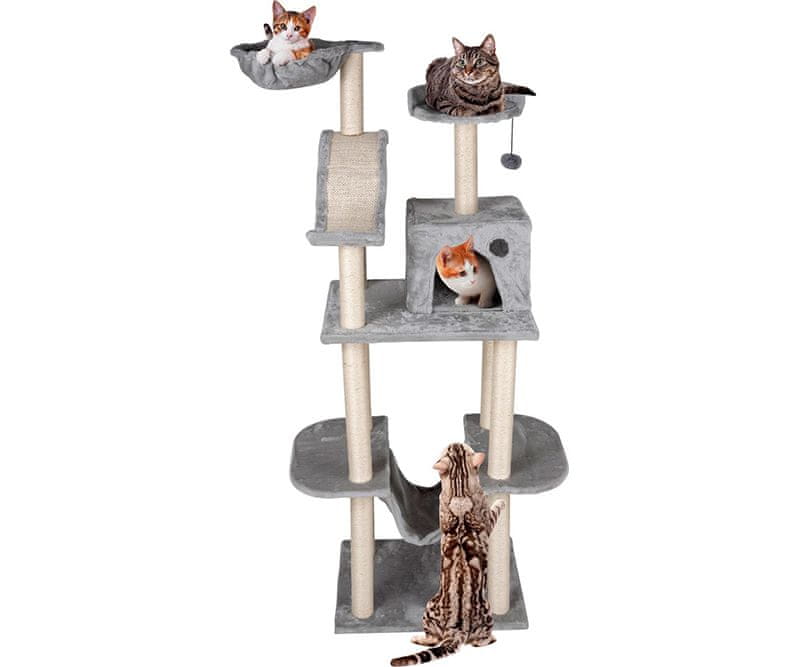 Omogočite svojim mačkom njihov lasten prostor, kjer bodo lahko zadovoljili vse svoje potrebe po igri in spanju. To mačje drevo v 4 nivojihvisečimi mrežami, praskalniki in igračami je primerno za to. Vaš hišni ljubljenček se bo lahko vsak dan igral, praskal in poležaval v njem po svojih željah. Mačje drevo izpolnjuje vse potrebe vaših ljubljenčkov in je primerno za uporabo tudi za več mačkov hkrati!
