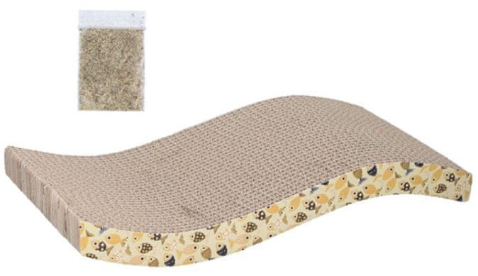 Valovit praskalnik je izdelan iz 100% valovitega papirja, ki je odporen na obrabo, praske in je neškodljiv za okolje. V pakiranju je priložena tudi vrečka z mačjo meto, ki je pri mačkah zelo priljubljena, da jih spodbudi k aktivnosti in praskanju.