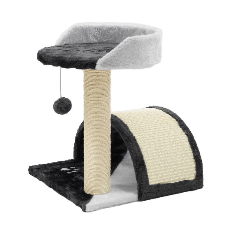 Praskalnik ima veliko praskalno porvšino (55×17 cm) na kateri si bo vaš kosmatinec lahko nabrusil krempeljčke. Pod ukivljeno praskalno površino bo iskal zatočišče in udoben prostor za počitek. Če pa mu tam ne bo všeč, se lahko uleže na višjo platformo s premerom 30cm. Brez skrbi, nismo pozabili niti na cofek za igro.