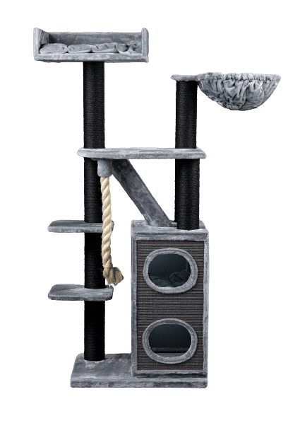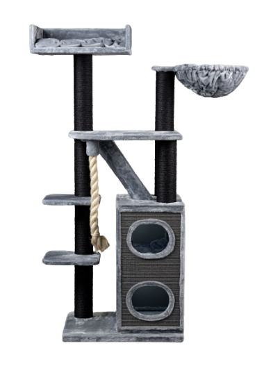 Plišasta površina mačjega drevesa je zelo udobna, drogovi za praskanje pa so obdani z vrvjo iz sisala. Mačje drevo , razgledne platforme in prostor za počivanje, zato bo zagotovo zabavalo vašega malega prijatelja. Osnova je močna in stabilna. To mačje drevo je primerno za več mačk.