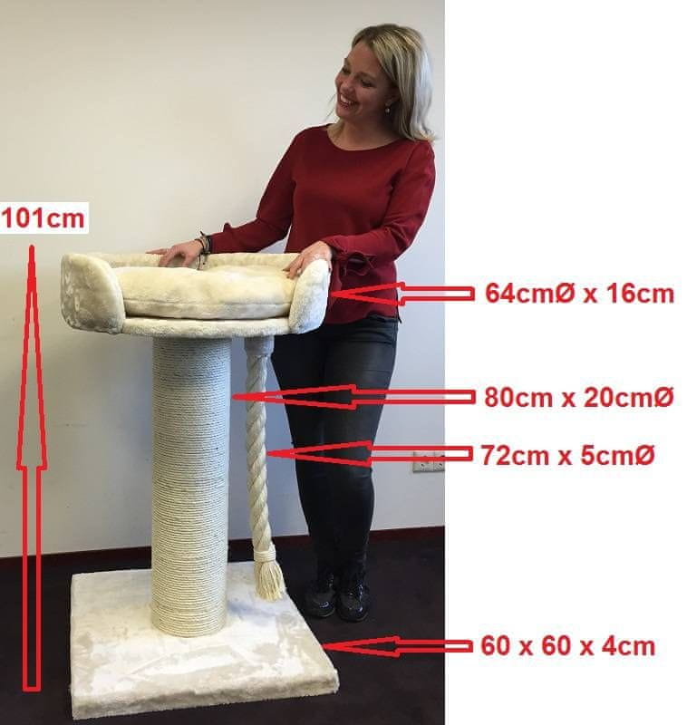 Plišasta površina mačjega drevesa je zelo udobna, drogovi za praskanje pa so obdani z vrvjo iz sisala. Mačje drevo , razgledne platforme in prostor za počivanje, zato bo zagotovo zabavalo vašega malega prijatelja. Osnova je močna in stabilna. To mačje drevo je primerno za več mačk.