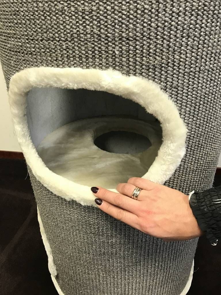 Plišasta površina mačjega drevesa je zelo udobna, drogovi za praskanje pa so obdani z vrvjo iz sisala. Mačje drevo , razgledne platforme in prostor za počivanje, zato bo zagotovo zabavalo vašega malega prijatelja. Osnova je močna in stabilna. To mačje drevo je primerno za več mačk.