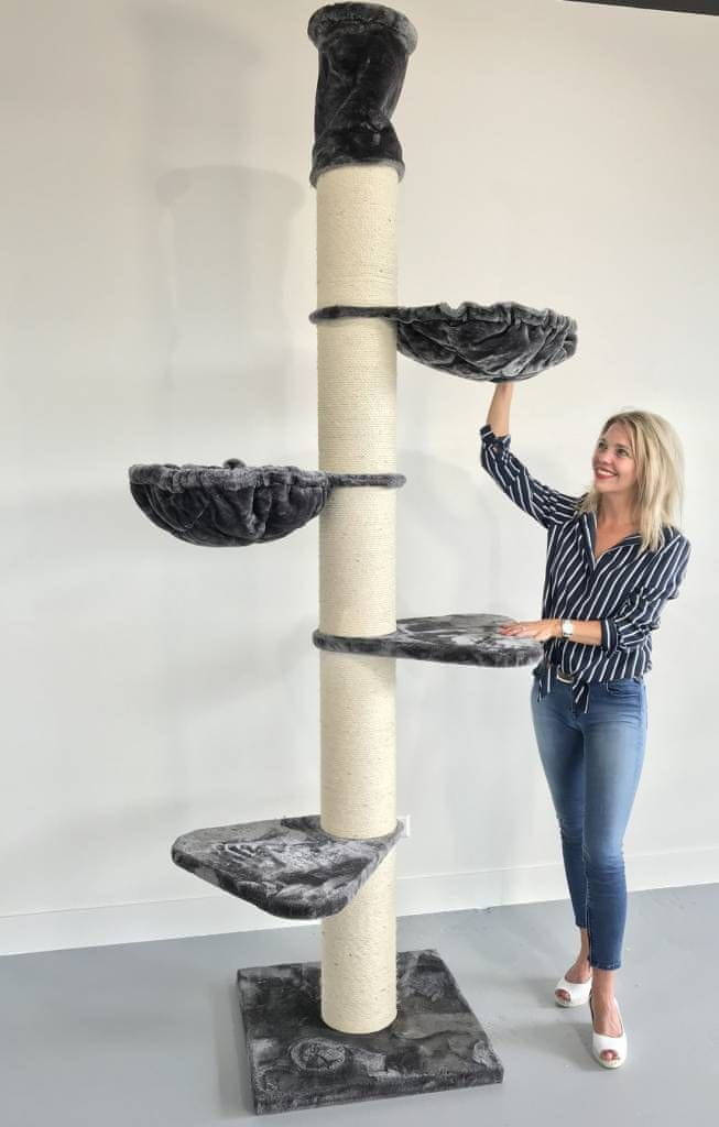 Plišasta površina mačjega drevesa je zelo udobna, drogovi za praskanje pa so obdani z vrvjo iz sisala. Mačje drevo , razgledne platforme in prostor za počivanje, zato bo zagotovo zabavalo vašega malega prijatelja. Osnova je močna in stabilna. To mačje drevo je primerno za več mačk.