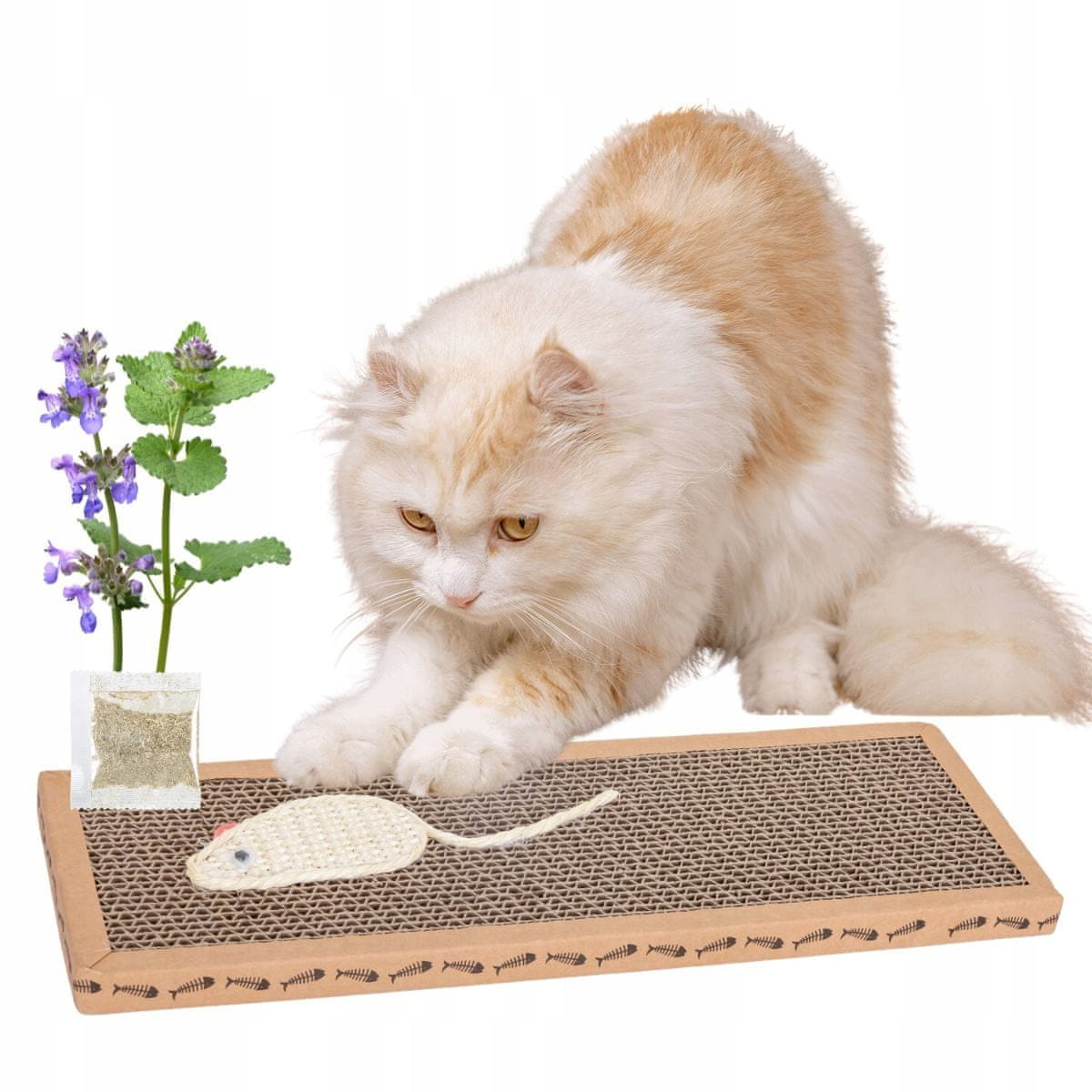 PRASKALKA za mačke iz kartona z mačjo meto KARTON z miško iz sisala ECO Celoten opis