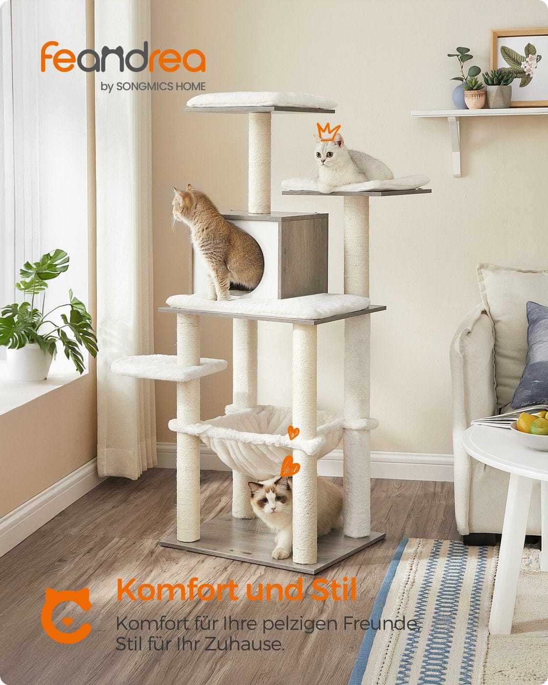 Ta sodoben mačji drevo nudi udoben prostor za vašo mačko za počitek, igro in ostrenje krempljev, kar pomaga zaščititi vaš pohištvo. Oblikovan tako, da se elegantno prilega vašemu domu, ponuja več nivojev za plezanje in počivanje. Enostaven za čiščenje za vsakodnevno udobje. Celoten opis