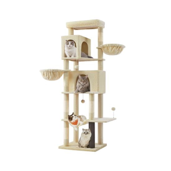 Songmics Mačje drevo večnivojsko z 2 jamama in 2 visečima mrežama 59x48x1907 cm bež