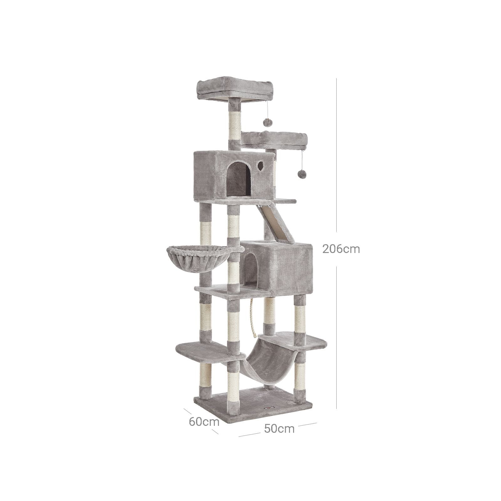 Songmics Plezalno drevo za mačke 206 cm veliko mačje drevo 60x50x206 cm sivo