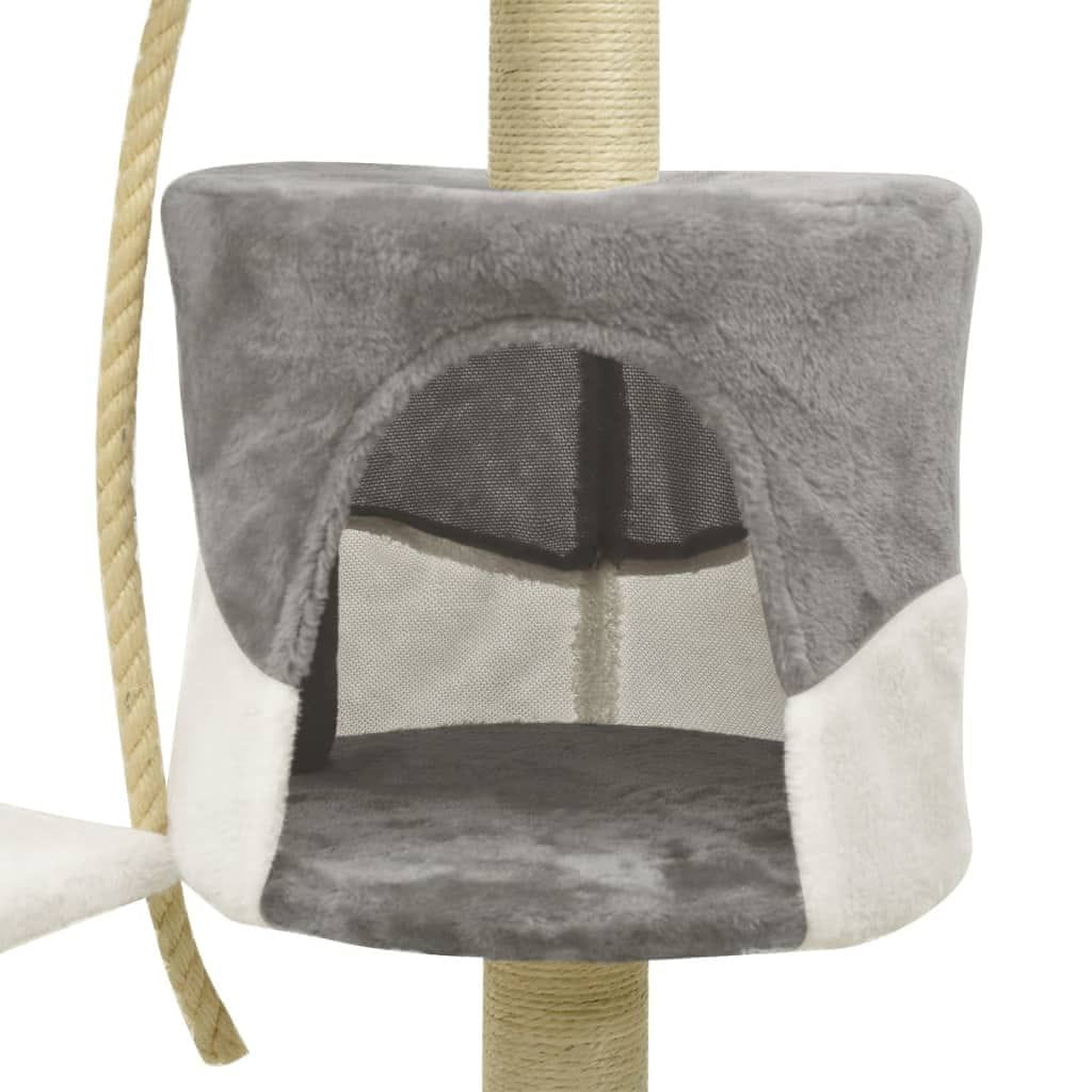 Vidaxl Mačje drevo s praskalniki iz sisala sivo in belo 120 cm