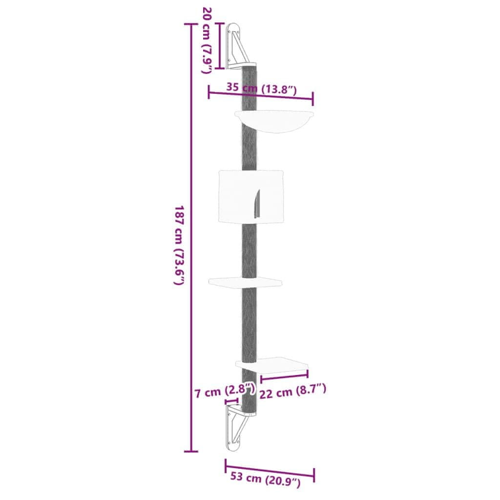Vidaxl Stensko mačje drevo s praskalnikom svetlo sivo 187 cm