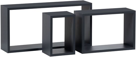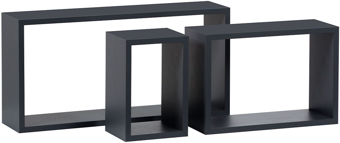 Komplet 3 sodobnih stenskih polic različnih velikosti v minimalistični zasnovi in pravokotni obliki. Izdelan je v temno sivi mat barvi s fino teksturo. Okvir je izdelan iz MDF, površina mat laminat. Paket vključuje polico, vijake in zatiče za pritrditev. Nosilnost police je 5–15 kg, odvisno od vrste podpornega zidu.