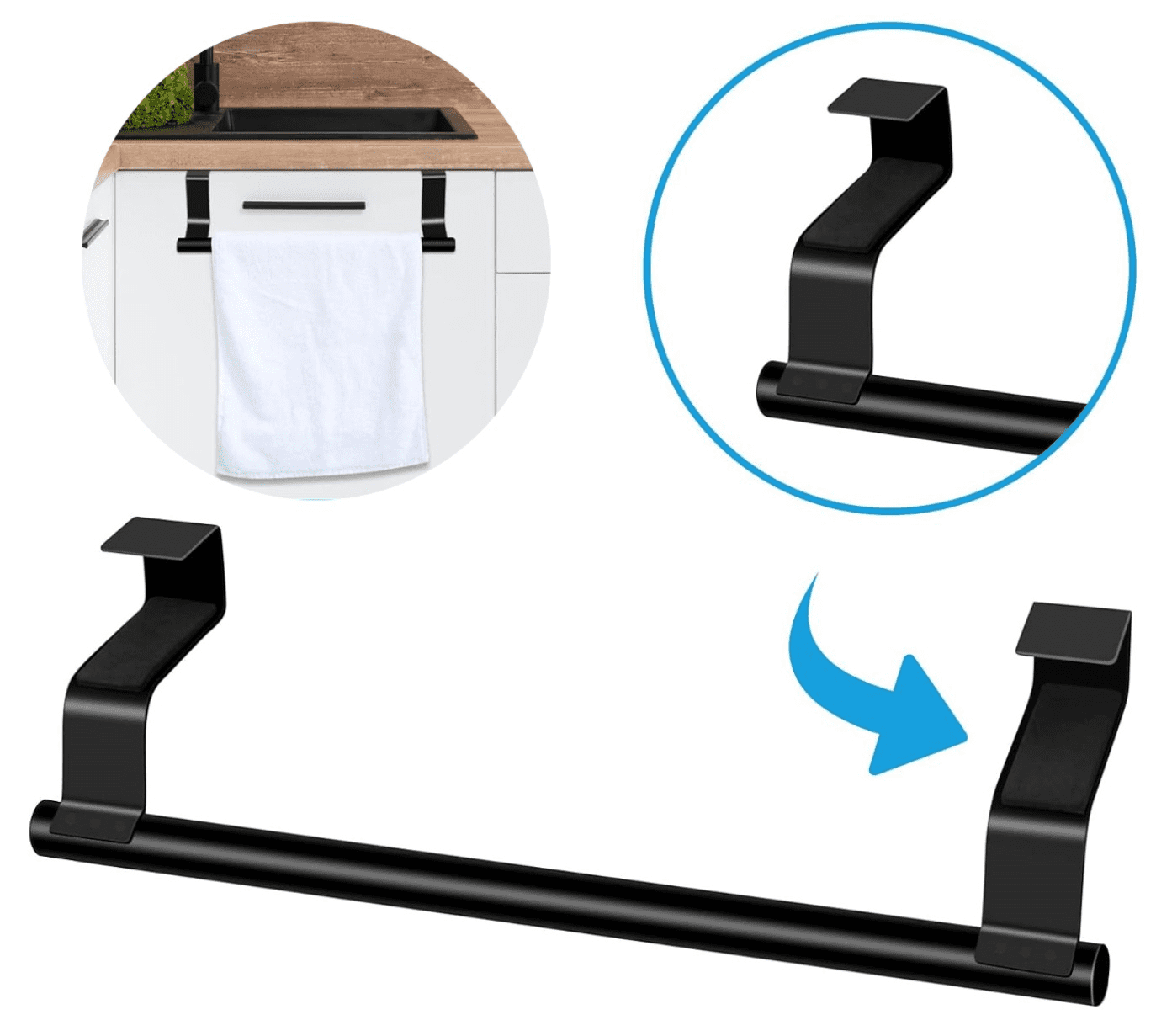Camerazar Črni obešalniki 2 kosa za vrata kuhinjske omare, kopalniški nosilec za brisače