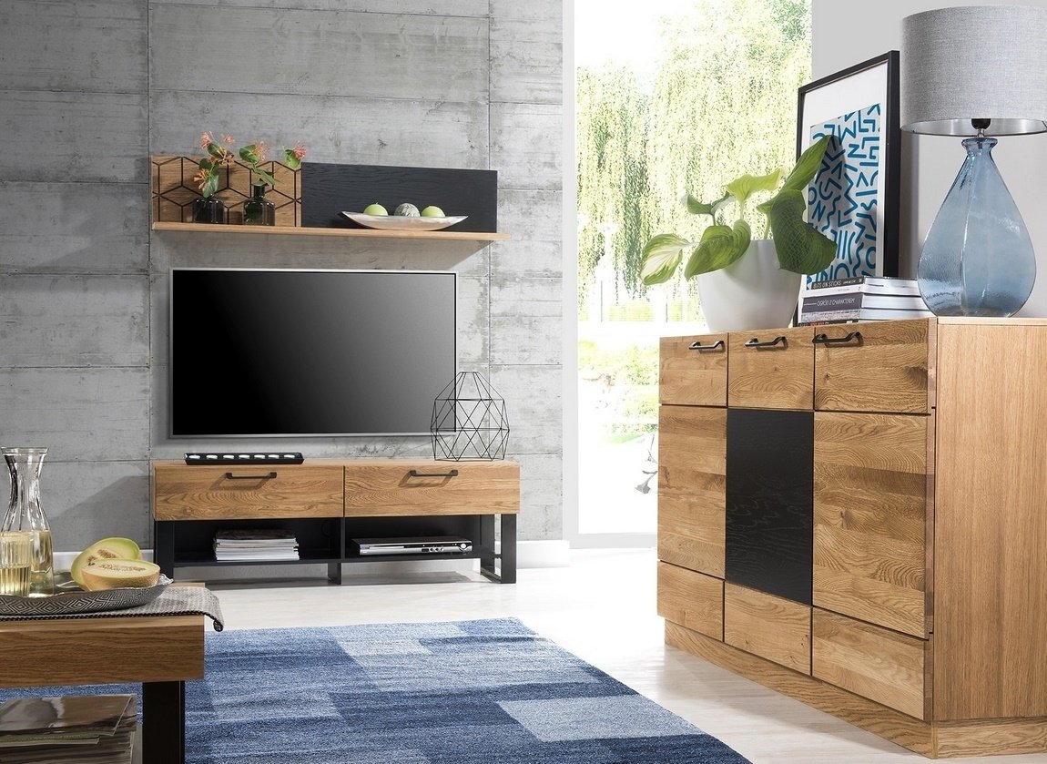 Kratka viseča polica iz serije sektorjev MOSAIC. Sodobna zasnova v kombinaciji masivnega poliranega hrasta z rezkanimi šestkotnimi okraski bo vaši jedilnici ali dnevni sobi dodala edinstven videz. Površina zunanjih delov je obdelana z oljem – medeni hrast ali lakirana – črna mat. Celoten opis