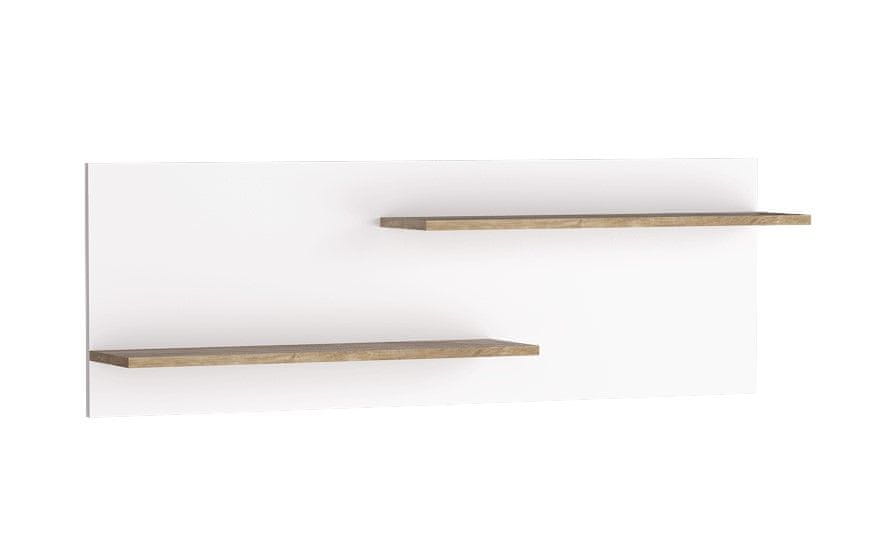 Viseča polica v sodobnem dizajnu. Kolekcija pohištva združuje preprostost, izviren videz in funkcionalnost. Polica je izdelana iz kakovostnega laminata, obrobljenega s trakom ABS, v barvi hrast ribbeck/beli sijaj. Celoten opis
