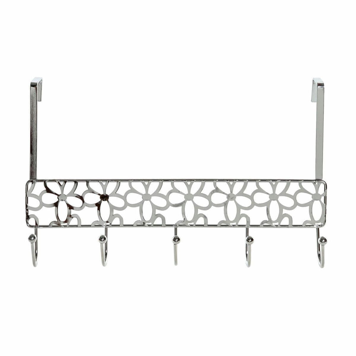 DKD Home Decor Vratni obešalnik DKD Home Decor Srebrna kovina Plastični cvetovi 32 x 10 x 19 cm