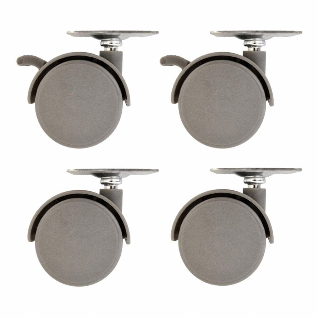 material PVC, barva siva komplet vključuje 4 kompletna kolesca, od tega 2 z zavoro, primerna za regale MAX Celoten opis