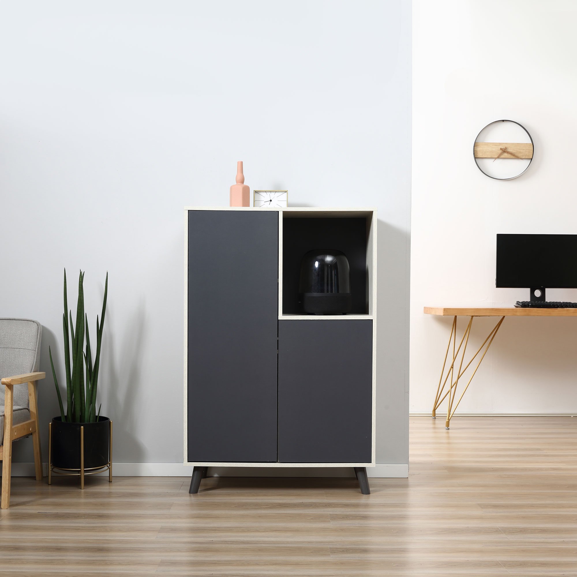 HOMCOM HOMCOM Moderna lesena knjižna omara z dvema vratoma in odprtim predalom, večnamensko pohištvo za dnevno sobo, spalnico, pisarno, temno siva