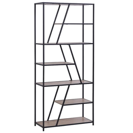 HOMCOM HOMCOM Stenska knjižna polica v industrijskem slogu z 9 asimetričnimi lesenimi in kovinskimi policami črna 80x33x180cm