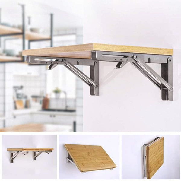 Zložljiv nosilec za stenske police z naklon 90 stopinj lahko namestite v katerikoli prostor po želji – naj bo to dnevna soba, kuhinja, kopalnica, pisarna ali trgovina. Ko ni v uporabi, se lahko nosilec umakne ob steno in tako ustvari več prostora v stanovanju. Celoten opis