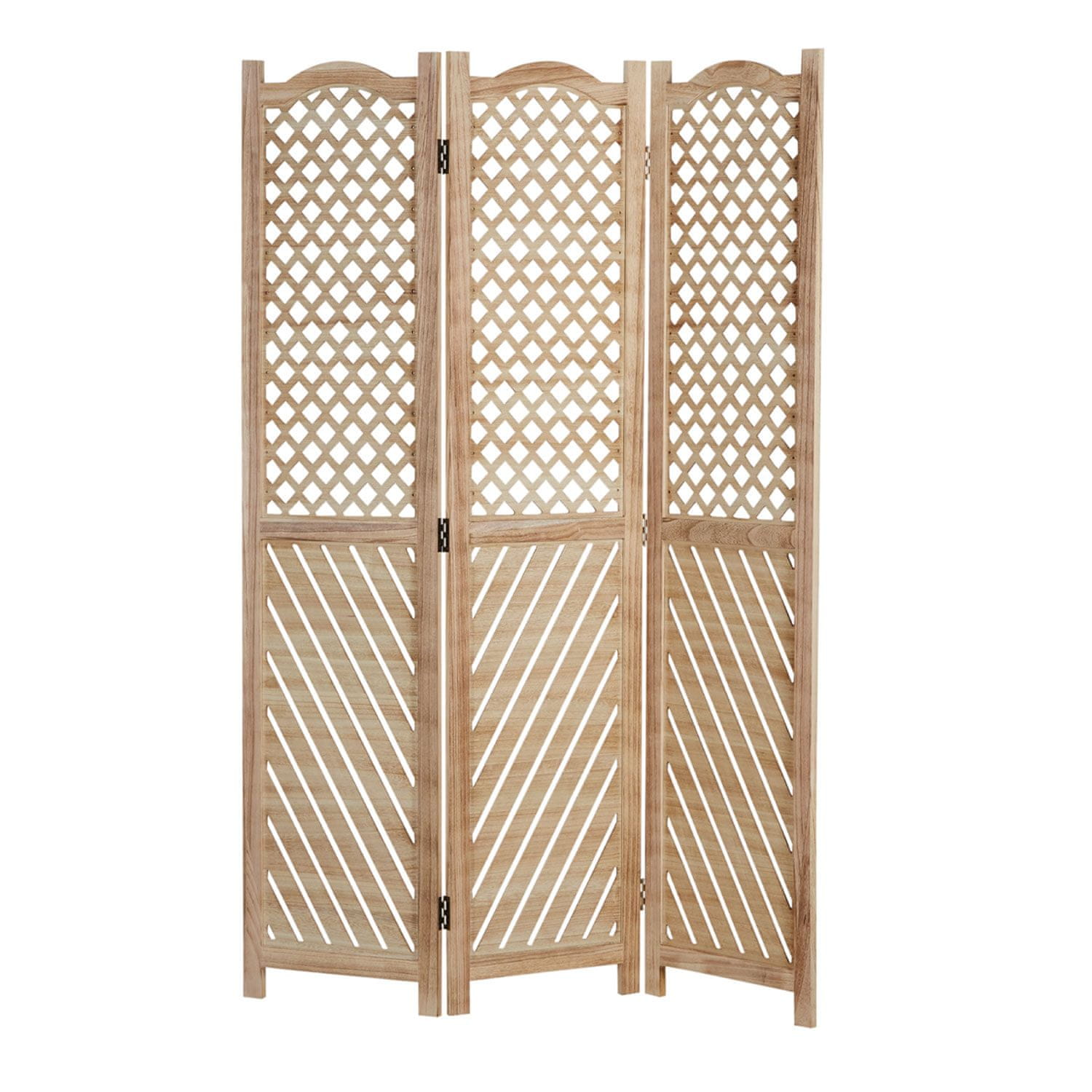 Ta vsestranska pregrada za prostor je zasnovana za zagotavljanje zasebnosti ali kot lahka pregrada v različnih prostorih, kot so dnevne sobe, spalnice, pisarne, hodniki, zimniki ali čakalnice. Njena naravna lesena površina in elegantni rezkani vzorci dodajo pridih prefinjenosti vsakemu prostoru ter ustvarijo prijetno in vabljivo vzdušje. Tridelna zasnova omogoča enostavno zlaganje in kompaktno shranjevanje, ko ni v uporabi, kar jo naredi praktično in estetsko dovršeno.