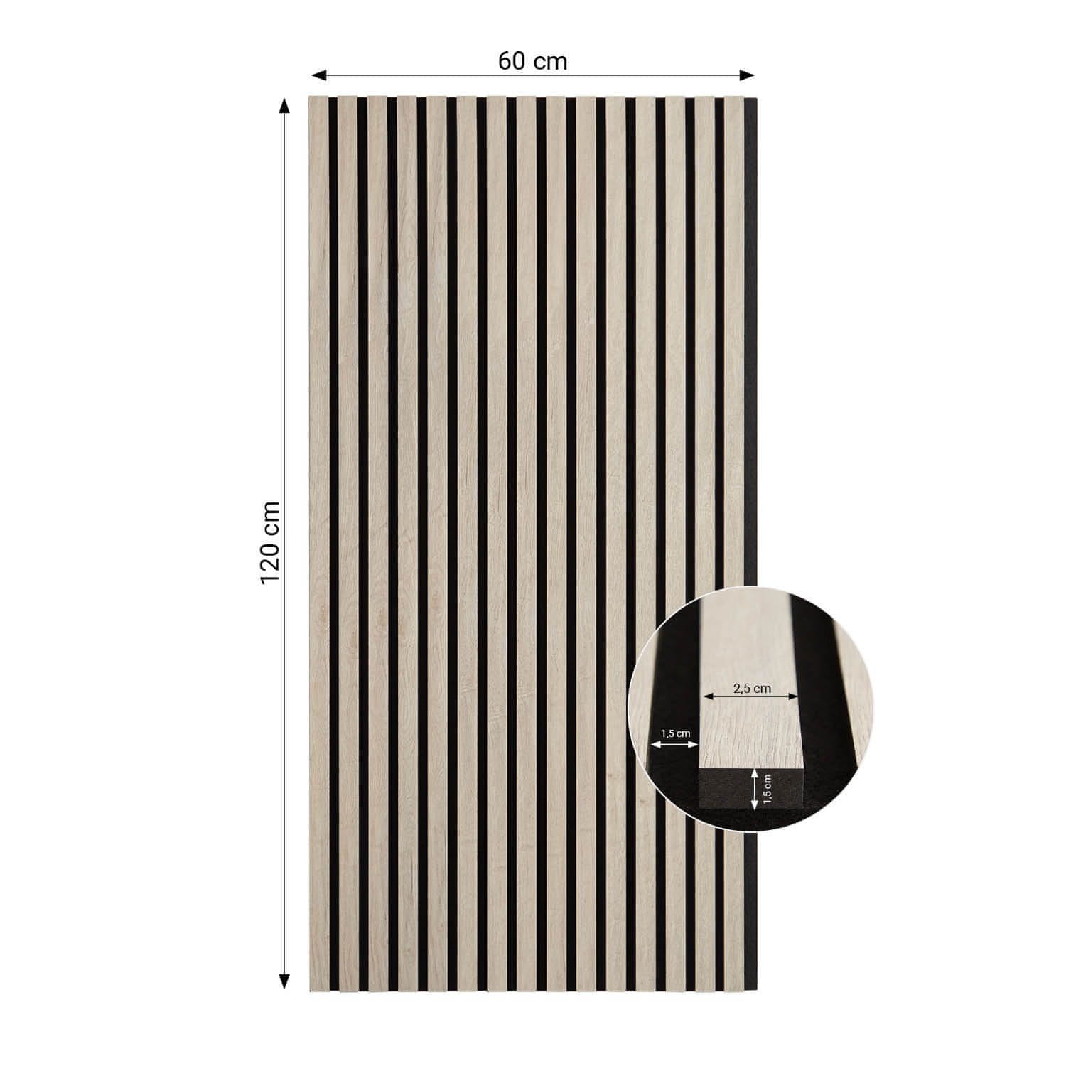 • Dimenzije posamezne lesene letvice (ŠxVxG): 2,5 × 120 × 1,5 cm