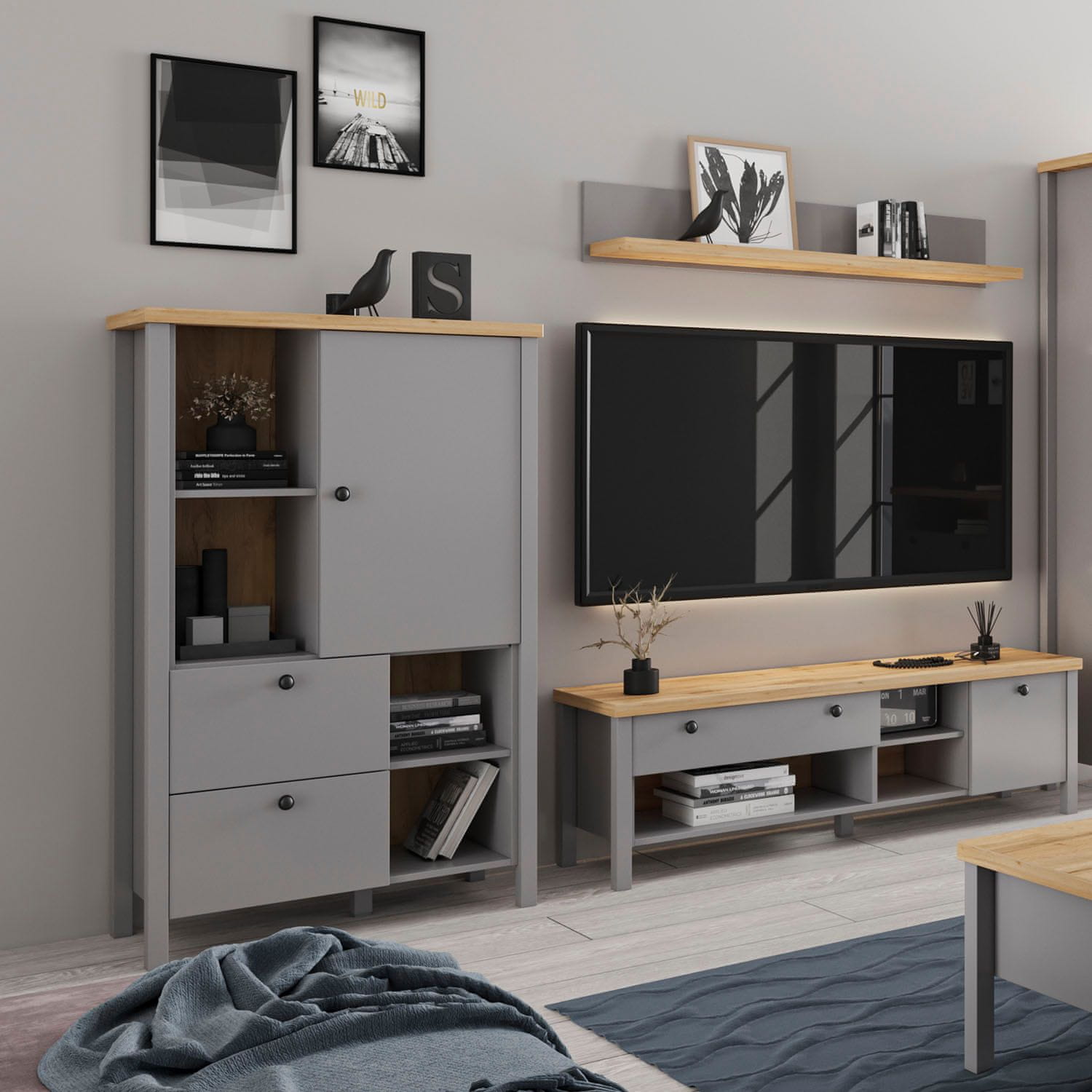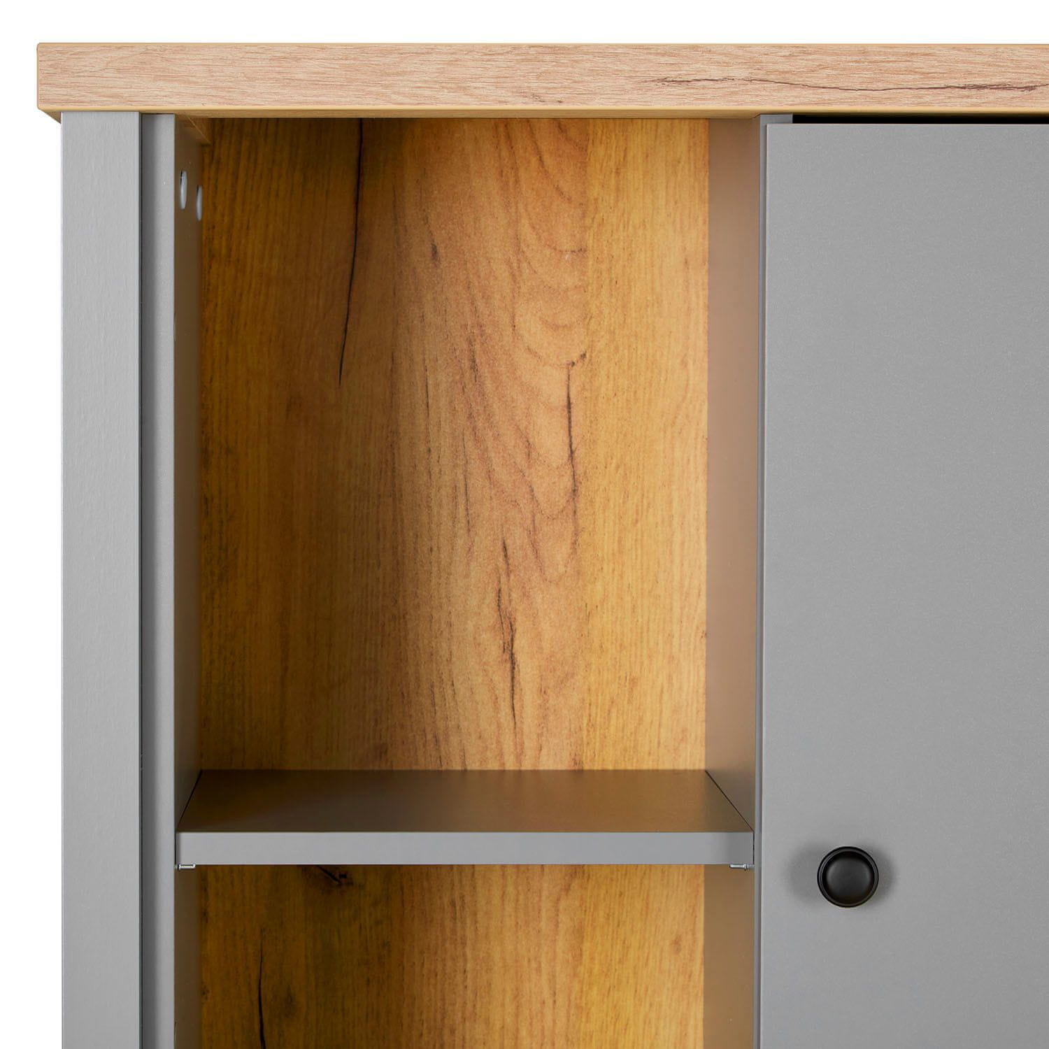 • Omarica iz lesenega kompozita v sivi barvi in lesnem izgledu