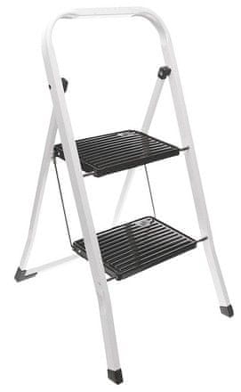 • zložljive jeklene stopnice z 2 stopnicama – nepogrešljiv pomočnik v delavnici, garaži in gospodinjstvu – cenili boste stopnice npr. pri pleskanju, obešanju zaves ipd. – enostavno jih pospravite, saj so zložljive – varovalo proti zlaganju preprečuje nenamerno zlaganje stopnic, ko jih uporabljate – skupna višina: 90 cm – širina: 47 cm – nosilnost: 125 kg – barva: bela / črna