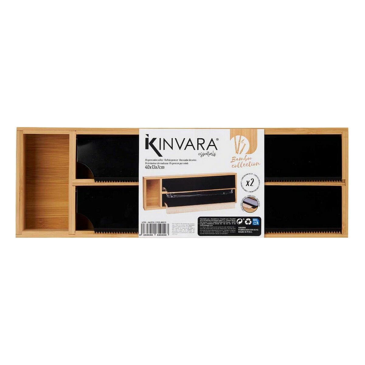 Kinvara Dozator za dvojno folijo Naravna črna iz nerjavečega jekla Bambus (40 x 7 x 13 cm)