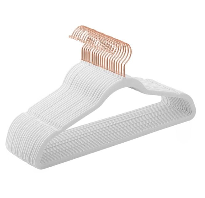 Ljubki dom Obešalnik za oblačila z belim velurjem, 20 kom