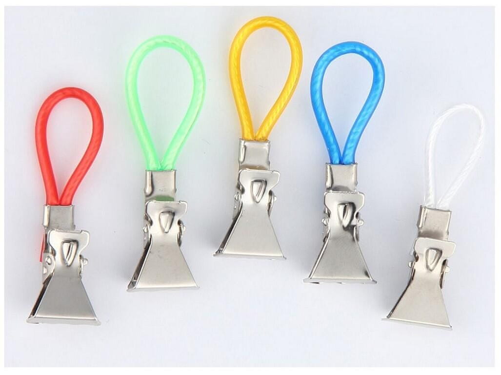 Priponke za brisače (kavlji, zavihki) so praktičen gospodinjski pripomoček za obešanje brisač in pralnih krp v kopalnici ali kuhinji. Komplet 5 kosov. Material – guma, kovina. Različne barve. Dimenzije – 1,5 × 5,2 cm.