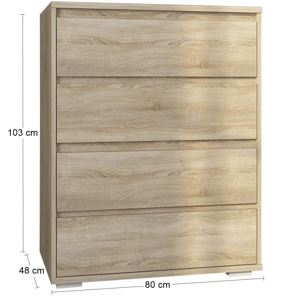 nabbi Komoda Lovik CH-800-4DR - hrast sonoma