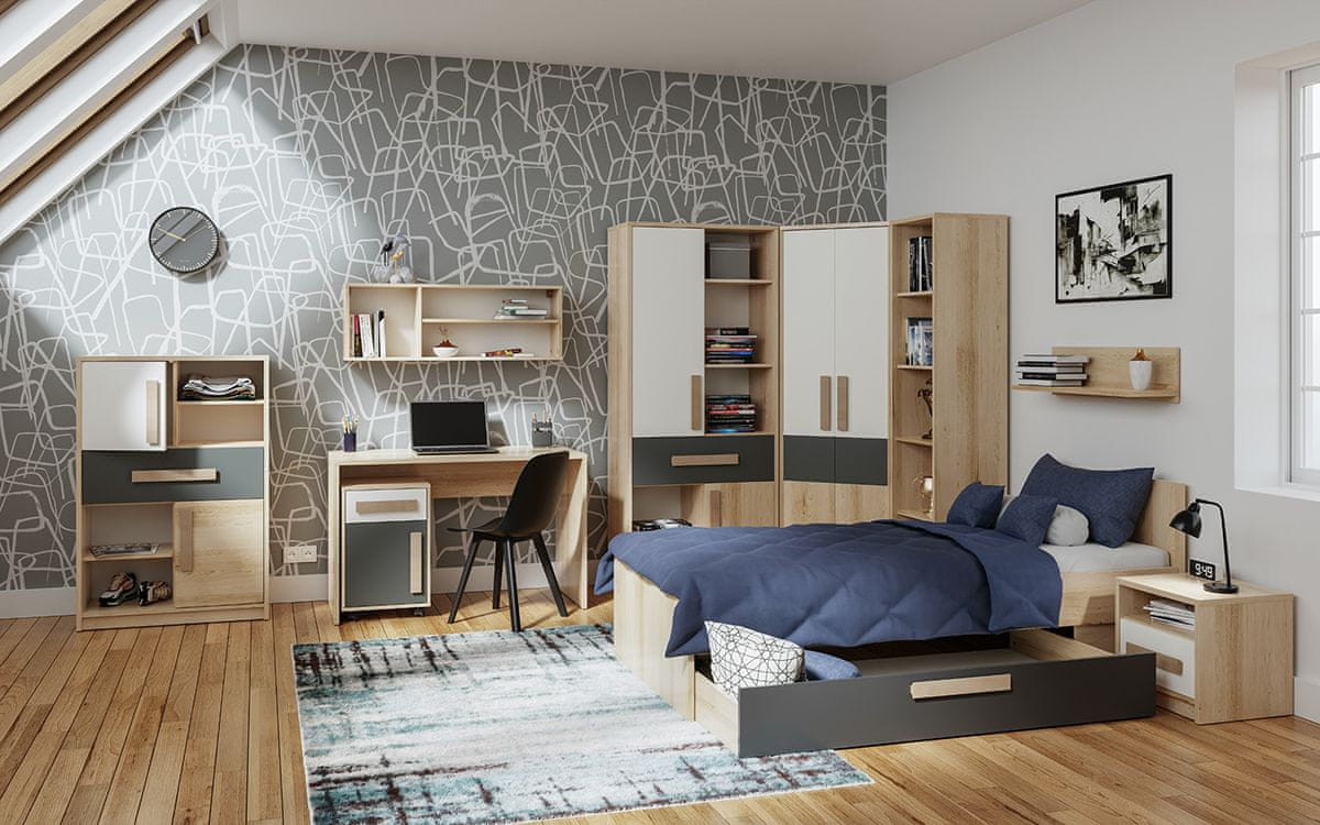 S kakovostnim in modernim pohištvom Aurin si uredite delovno ali študentsko sobo povsem po svojih željah. Polica AURIN SS-850 morate imeti tudi vi! Njegove dimenzije (ŠxGxV): 83,1×24×21,8 cm. Peščena umetniška barvna različica daje pohištvu pridih. Za izdelavo se uporablja visokokakovosten DTD (iveral). Debelina masivnega iveralnega korpusa je 22 mm. Trdni ABS robovi (0,5/1) zagotavljajo odpornost in vzdržljivost. Posodobite svoj dom s tem kakovostnim in elegantnim pohištvom.