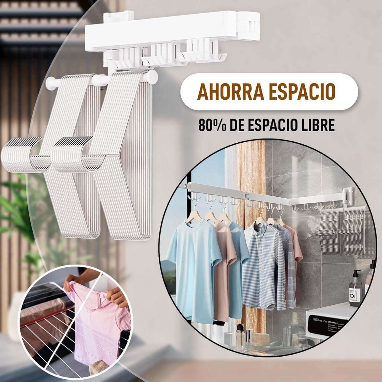 - Prilagodljive roke: tri roke se razprejo pod kotom 180 stopinj za optimalno razporeditev oblačil.