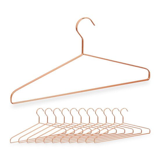 Elegantni obešalniki za oblačila omogočajo urejeno shranjevanje saj imajo kovinsko bakreno zasnovo in palico za hlače ter so primerni za suknjiče hlače in druga oblačila v vsaki garderobi. Celoten opis