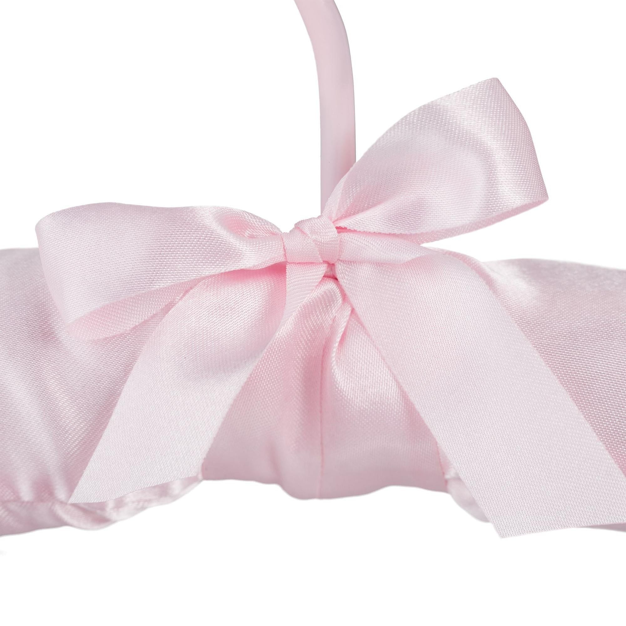 Mehko podloženi obešalniki za jakne dajejo glamurozen pridih vaši garderobi, hkrati pa ščitijo oblačila pred gubami. Ti obešalniki, prevlečeni s satenom, imajo okrasni lok in 360° vrtljiv kavelj za prilagodljivo uporabo.