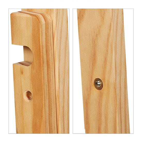 Zložljiva zasnova omogoča enostavno prihranek prostora, ko obešalnika za oblačila ne uporabljate, zato je idealen za manjše domove ali sobe z omejenim prostorom. Ta obešalnik za plašče, izdelan iz trpežnega lesa, ponuja tako stil kot funkcionalnost, zaradi česar je eleganten dodatek vašemu domu. Z dimenzijami 150 cm x 45 cm x 35 cm in težo le 5 kg ga je enostavno premikati in postaviti tja, kjer ga najbolj potrebujete.