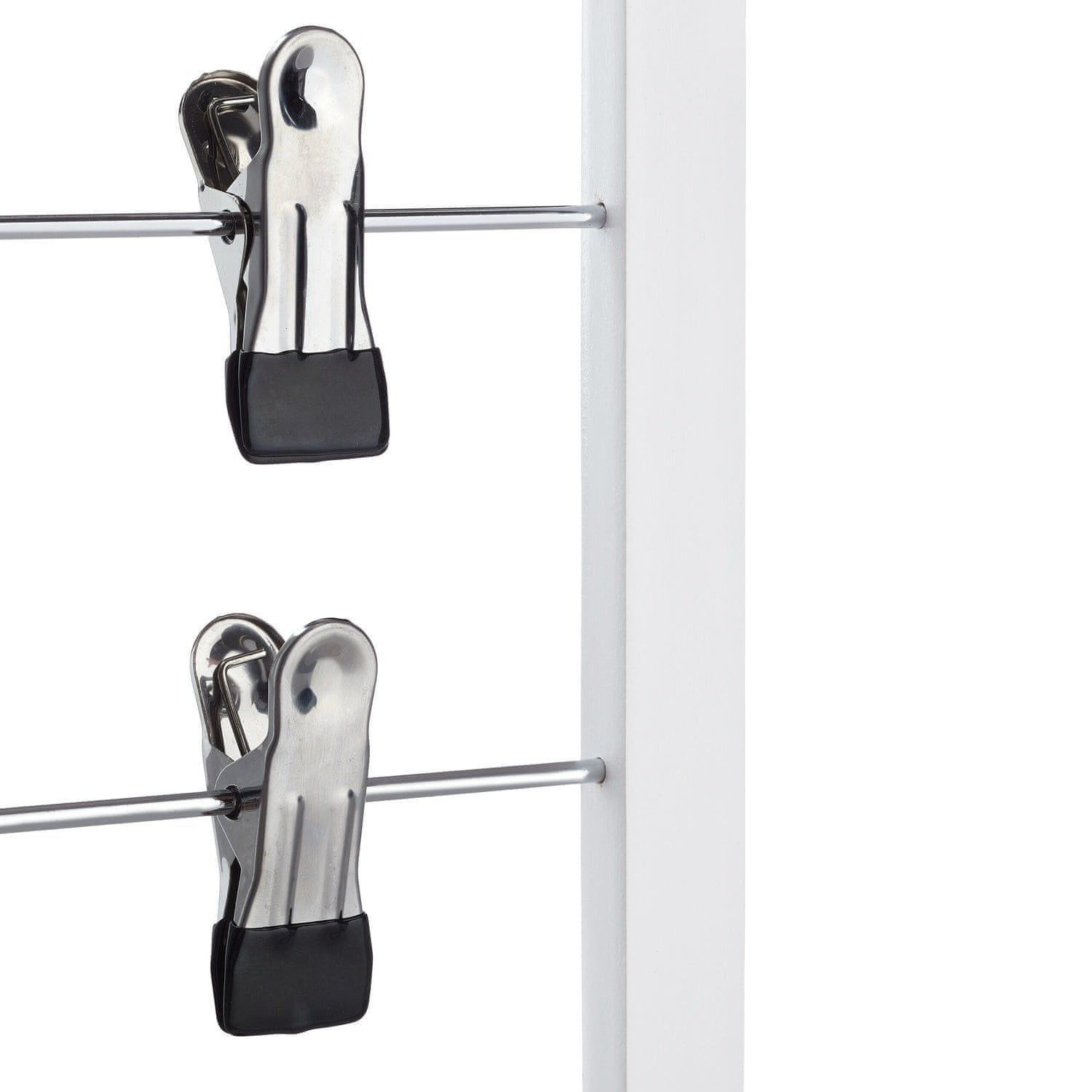 • Uporabite dve premični kavlji za prilagodljivo namestitev oblačil.