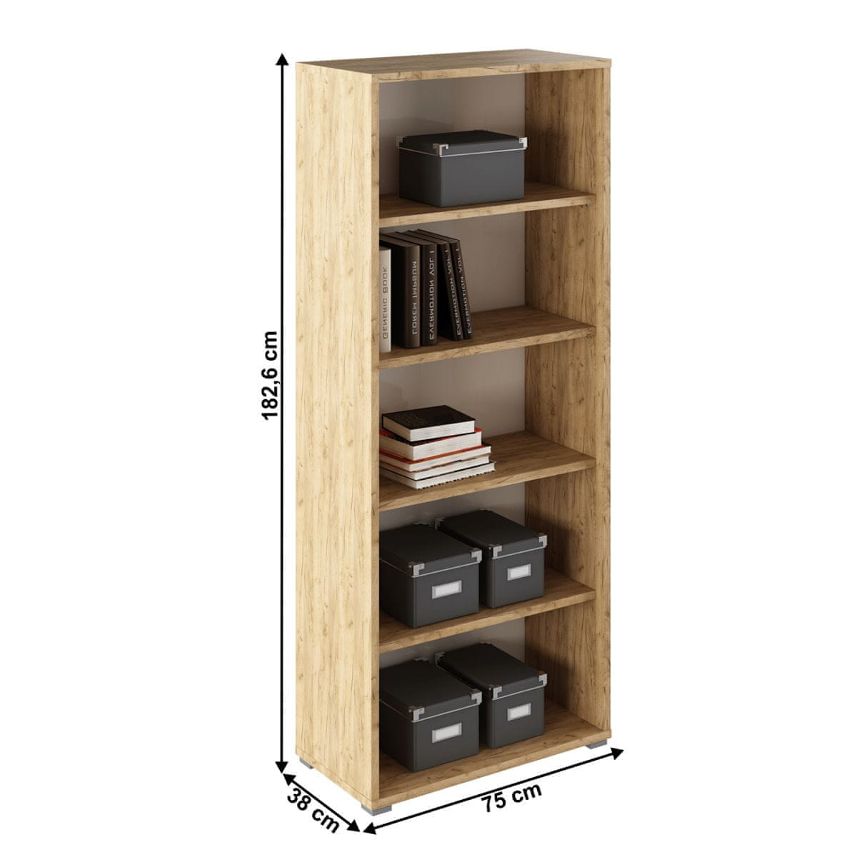 Polica Rioma Type 3 v elegantnem hrastovem in belem dizajnu je idealna rešitev za sodobno notranjost, ki zahteva praktične in elegantne prostore za shranjevanje. Ta polica znamke KONDELA ponuja dovolj prostora za shranjevanje knjig, okraskov ali pisarniškega materiala zahvaljujoč petim prostornim policam.
